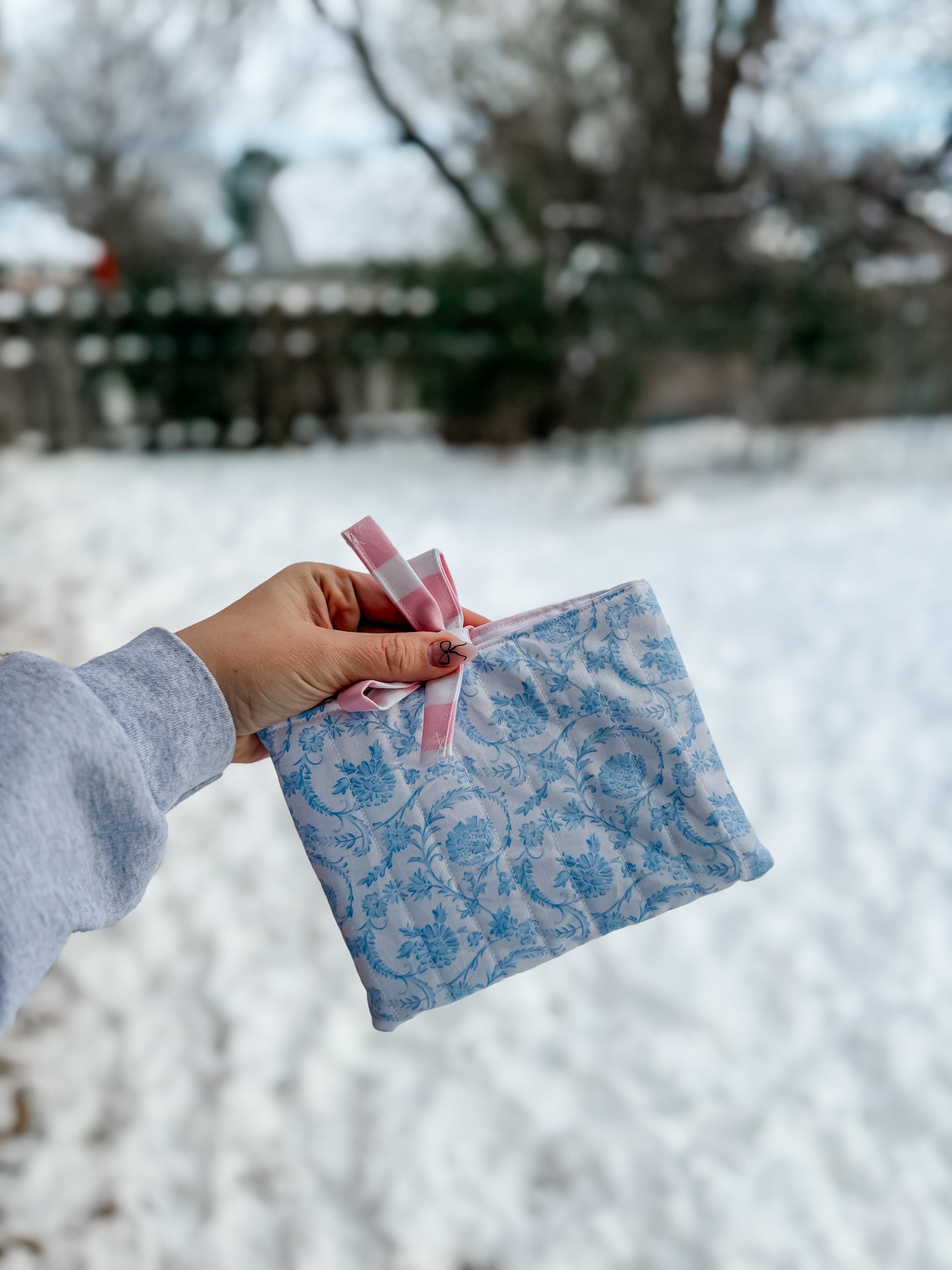 Blue Floral / Pink Stripe Kindle Case