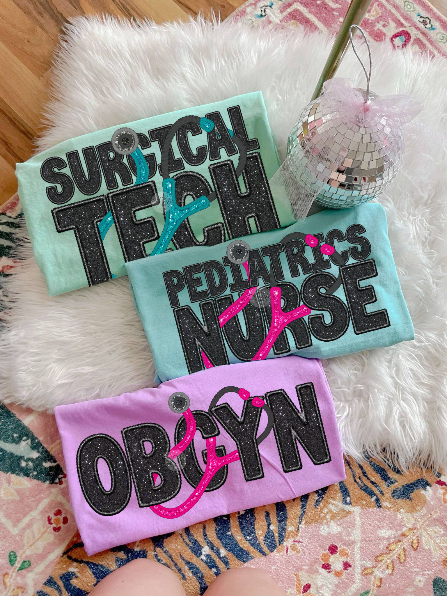 custom faux embroidered medical tee